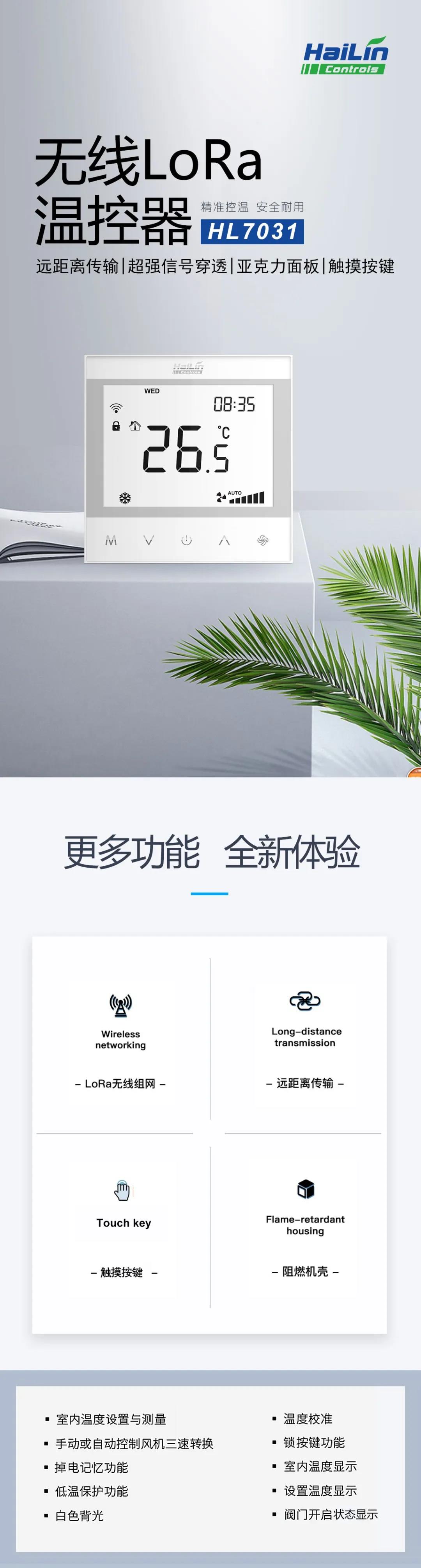 HL7031DB2-L溫控器是豪華型大液晶顯示供熱專用溫控器,適用于工業、商業及家庭居室的溫度控制,控制供熱設備的開啟與關閉。
