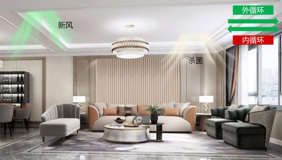 當室內(nèi)較大顆粒(5~10μm以及大于10μm,通常為飛沫、灰塵、花粉等)指數(shù)比較高時,容易讓細菌和病毒長期滯留在室內(nèi)環(huán)境中,系統(tǒng)此時會自動開啟新風凈化設備,通過凈化濾網(wǎng)降低較大顆粒物的存留;