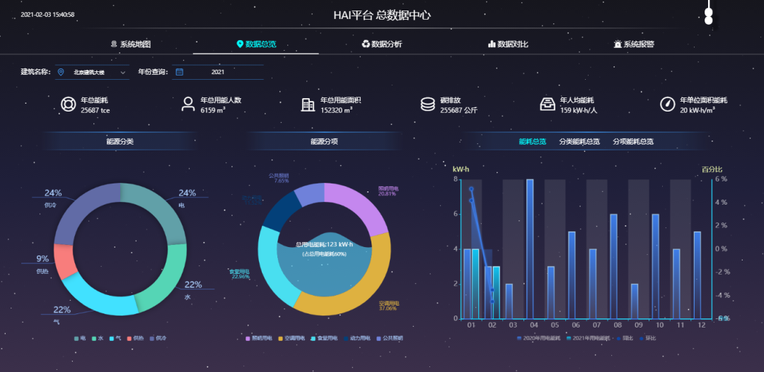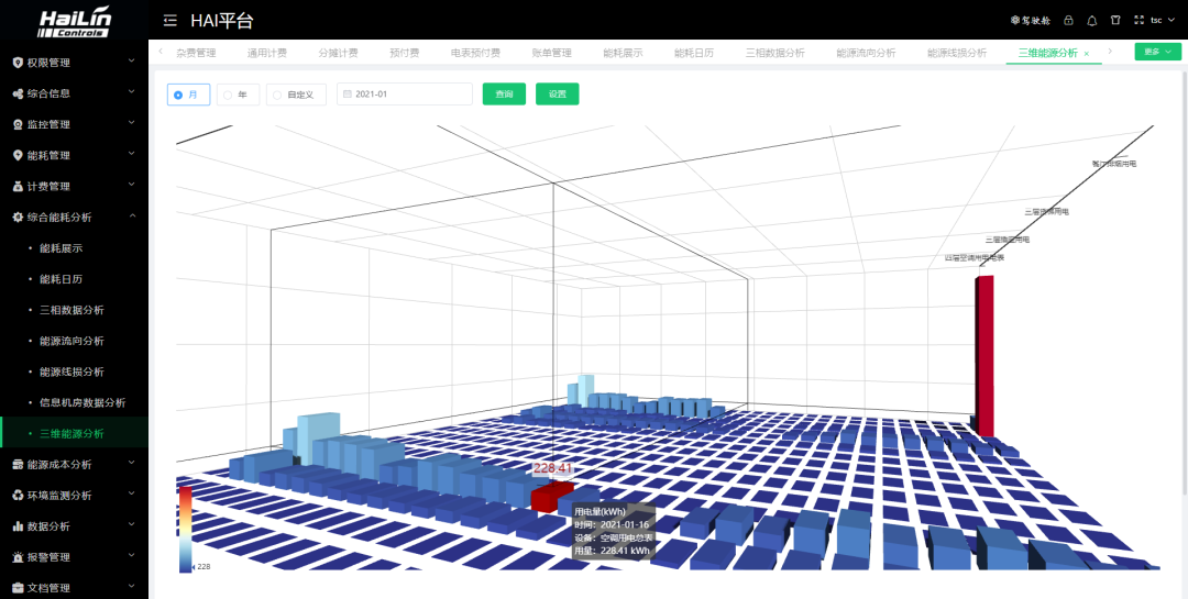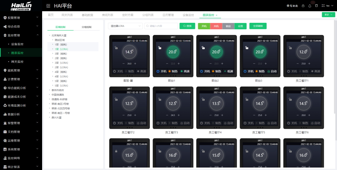 海林能源樓控系統選用采用一體化設計的海平臺,具有標準化的數據互通共享,可以在監管層的頂層形成信息閉環,既能實現邏輯策略的聯動控制,同時也為AI算法優化控制提供數據支持。從而使能源管理統計分析的結果,不僅用于各種方式的輸出展現,并且為樓控系統的優化控制提供支持,形成能源管理與樓宇自控的閉環。