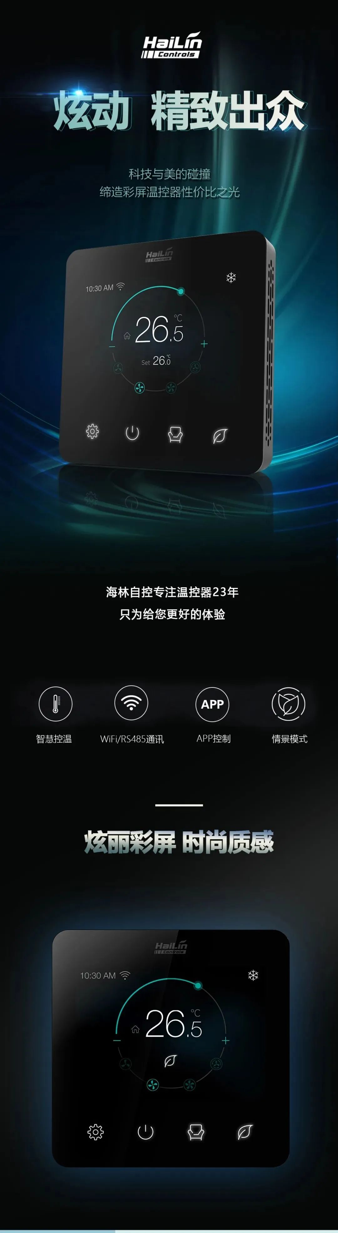 海林炫動溫控器適用于中央空調及供熱采暖的室內溫度控制。