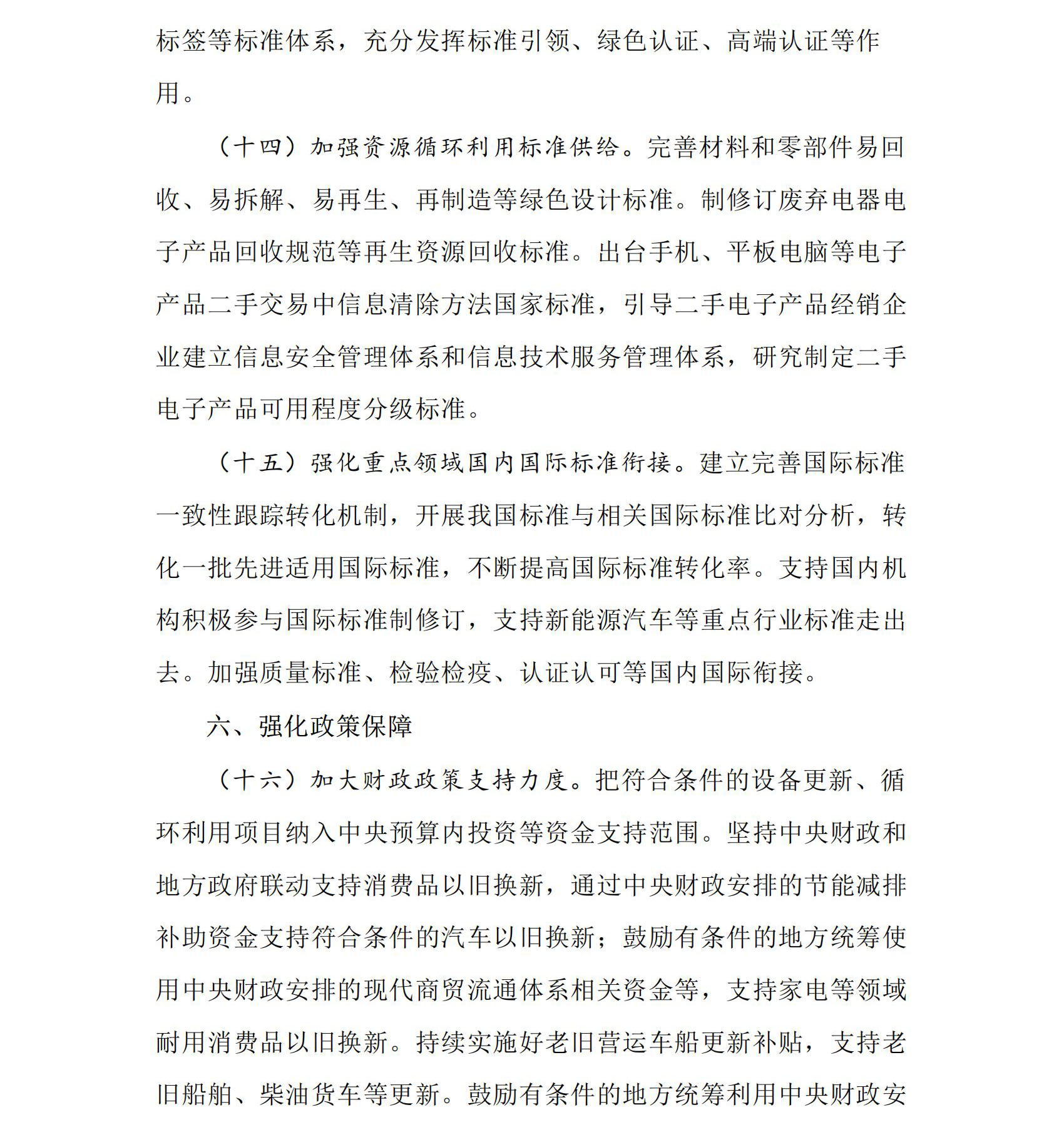 3月13日晚間,國(guó)務(wù)院正式印發(fā)《推動(dòng)大規(guī)模設(shè)備更新和消費(fèi)品以舊換新行動(dòng)方案》。