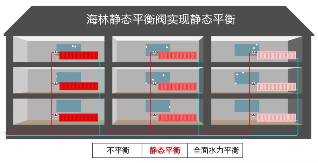 海林全面水力平衡系統,通過靜態平衡閥與動態平衡閥組合運用,在無需進行復雜水力計算的情況下,簡單快速地實現建筑流體管道系統的水力平衡,保證了建筑內“冷熱風水”舒適節能運行。