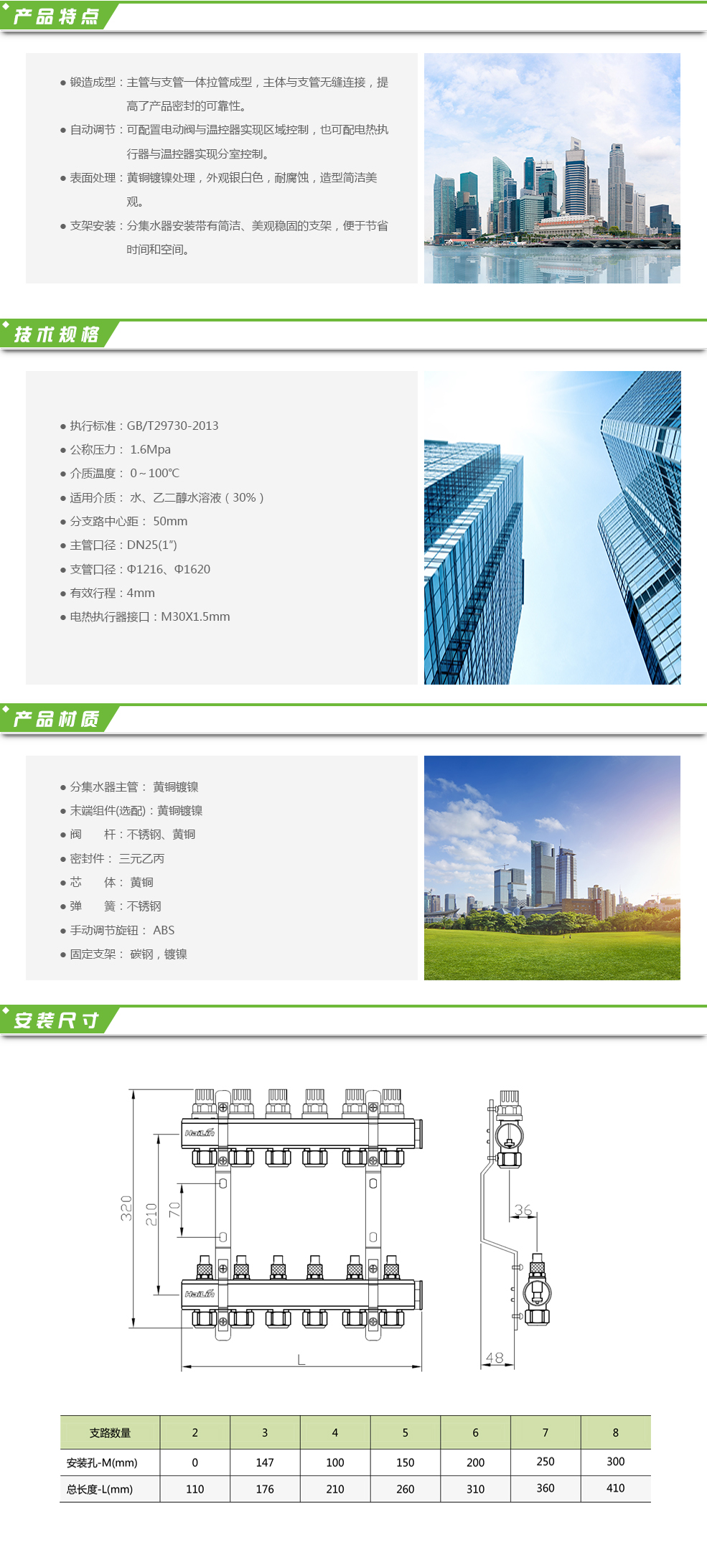 TH35系列分集水器為黃銅整體型材一體式分集水器,適用于地板采暖系統,控制輻射地板采暖系統的熱能。分集水器各回路均內置了調節水量的閥芯。可加裝電熱執行器和溫控實現獨立分室度制。用戶根據需要可自行設定室溫,溫控器會自動檢測房間溫度,并向執行器輸出信號,關閉或打開此房間的執行器,使室溫保持在設定溫度范圍內。也可以在分集水器主管上加裝電動閥,與溫控器配套使用 ...