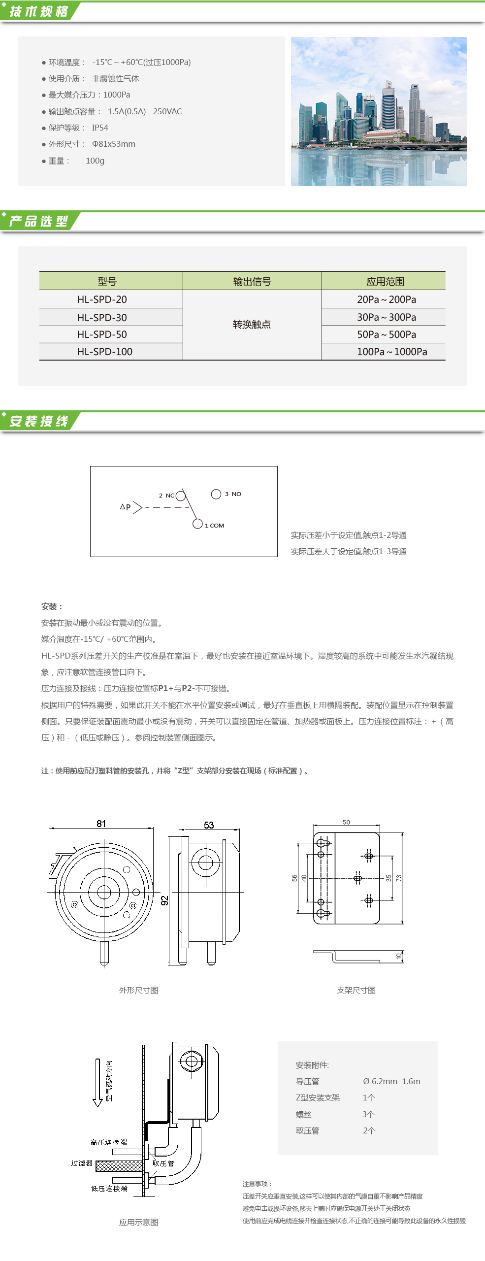 HL-SPD系列壓差開關可用于感知管道中的非腐蝕性氣體的壓力差、真空、過壓和氣流差等參數,常規應用包括:監測過濾網阻塞報警裝置、通風管道中氣體監測、控制可變氣體容積系統中的最大氣流、燃燒爐中氣體控制。